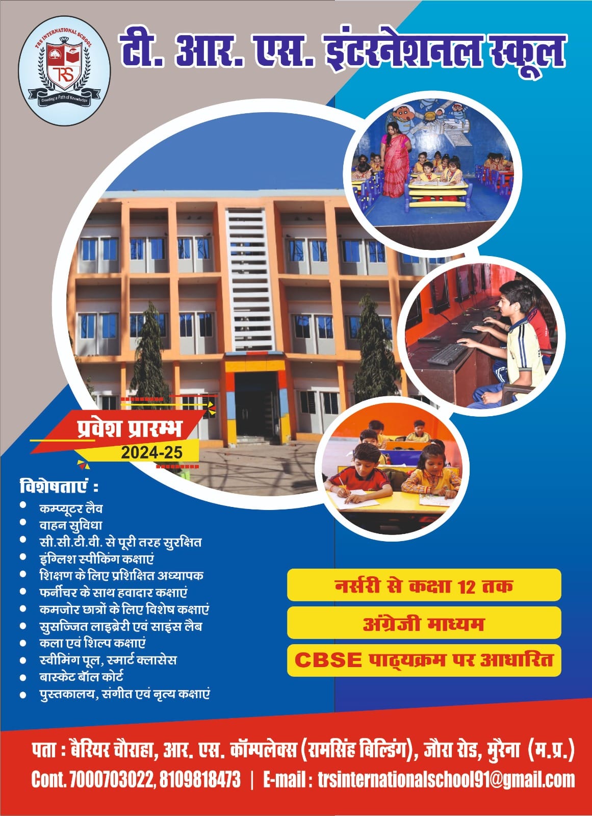 TRS International School is one of the best CBSE schools in Morena which has become a hallmark in the field of education. Our school is well known for innovative teaching methodologies and academic and cultural achievements. As the best CBSE high school in Morena, our aim is to lay a strong foundation for every student and spread the divine light of education.